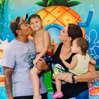 The birthday boy's mom made the SpongeBob decor that decorated both the house and patio. I was so impressed by her skill and creativity! The home and yard were being fully enjoyed by the family, neighbors, and friends that had come to celebrate. The waterslide and corn hole game were the biggest hits!