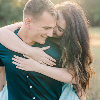 Caitlyn and Coby had an early fall sunset session with Claire McLain Photography in Fayetteville, NC. This young, married couple was a joy to capture in front of the camera and get to know. Caitlyn wore a beautiful boho, light blue dress and Coby wore a navy blue button-up shirt. We swapped stories and laughs throughout the evening. During the session, I had the couple try a few new photography prompts. One they enjoyed was to walk towards the camera as I take photos while "pretending to be drunk." This prompt always gets a few laughs and loosens up the clients. For this reason, I like to use this prompt at the beginning of a session. Then, I have each person take turns leading the other and try to create funny scenarios for them to enact (i.e. how would you get home through crowded streets). I made a reel with this prompt featuring Caitlyn and Coby on the Claire McLain Photography Instagram page here. This is a great tip to try at any couples session!