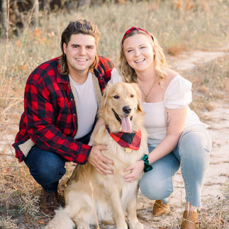With Tater, the handsome golden retriever, joining in the fun, I made sure to find a spot away from other park goers where we could get some great photos while not having to keep Tater on a short leash. I am always for all members - fur babies and paws and hooves - being included in family photos, but to always keep dogs on leashes or close by in public spaces. This is for the safety of other people, park rules (which can jeopardize my photography permit if violated), and to keep them within the frame for photos. Tater was an easy pup to work with - he was always close to Amy and Scott, and would just let his leash trail behind him. For people who'd like their dogs to be able to freely roam the entire time, I suggest the client to look into private areas or to have their session at their home.